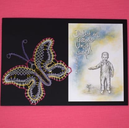 geklöppelter Schmetterling mit Karte